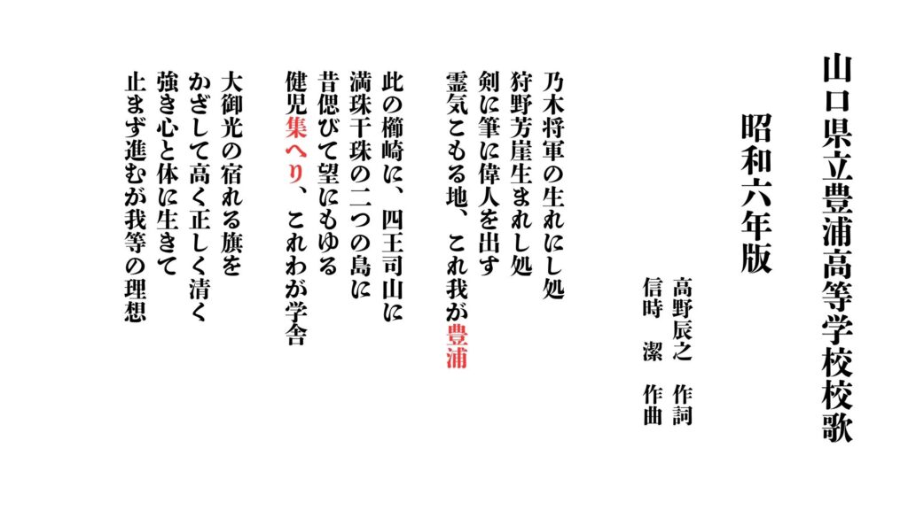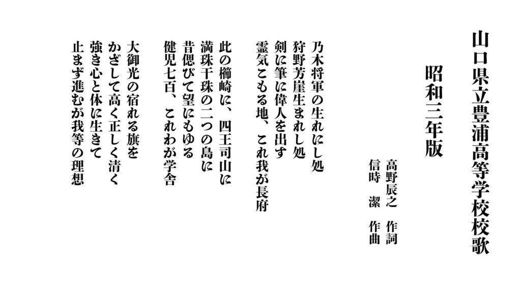 今回第125回山口県立豊浦高等学校同窓会総会会誌で特集記事として取り上げました校歌です。